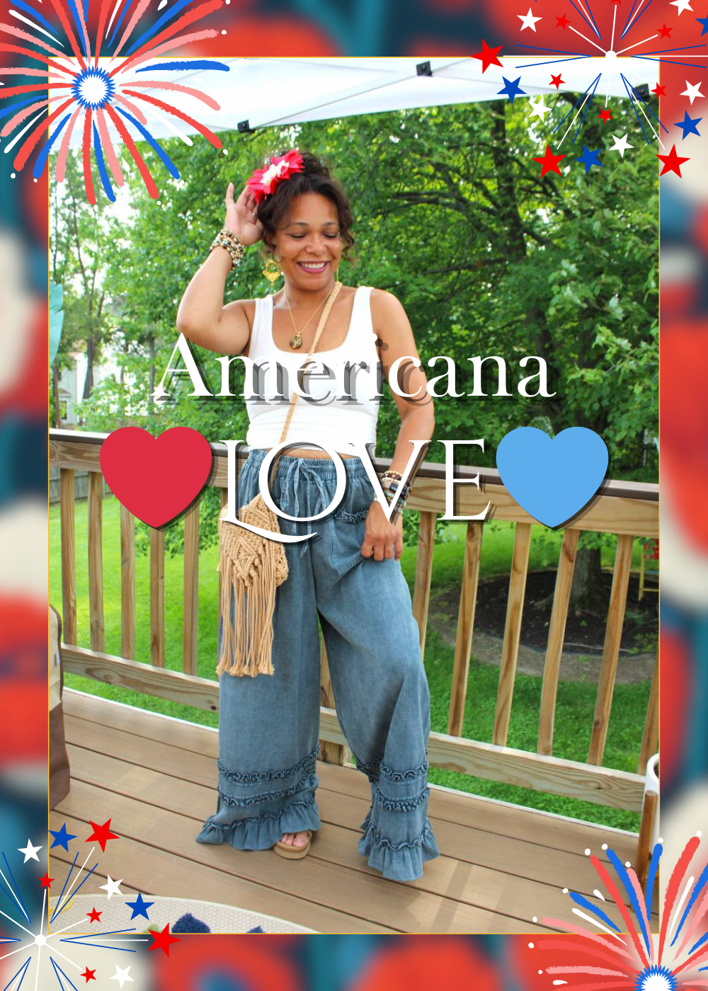 YT Spring Skies Bohemian Charm Tiered Patchwork Denim Pants