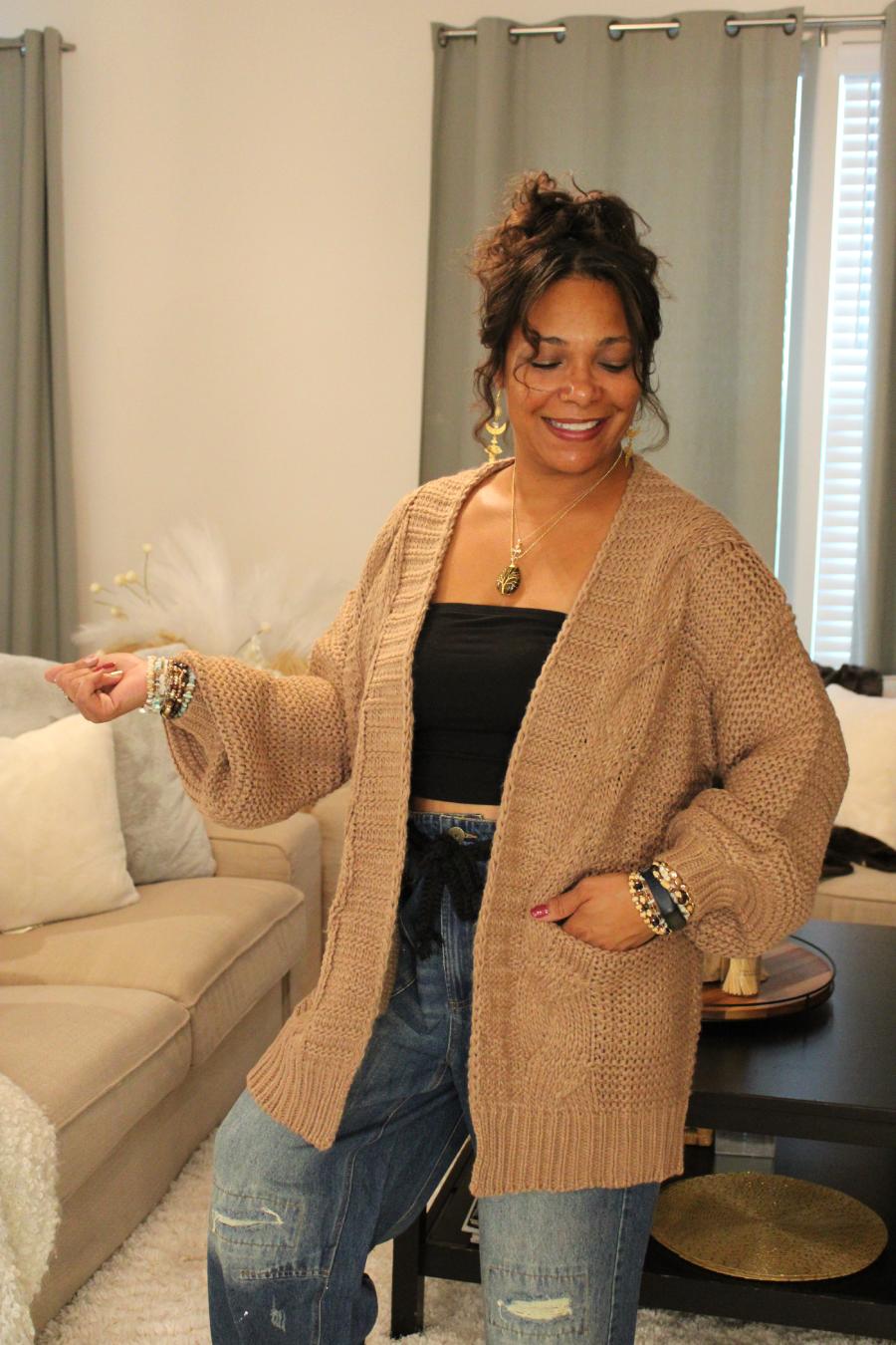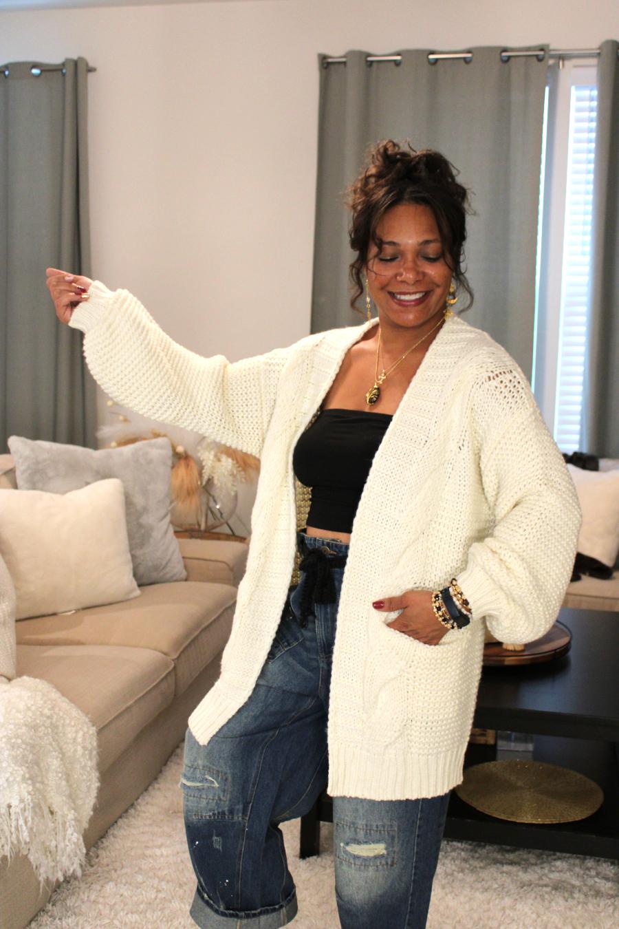 - Super comfy chunky cable knit cardigan sweater