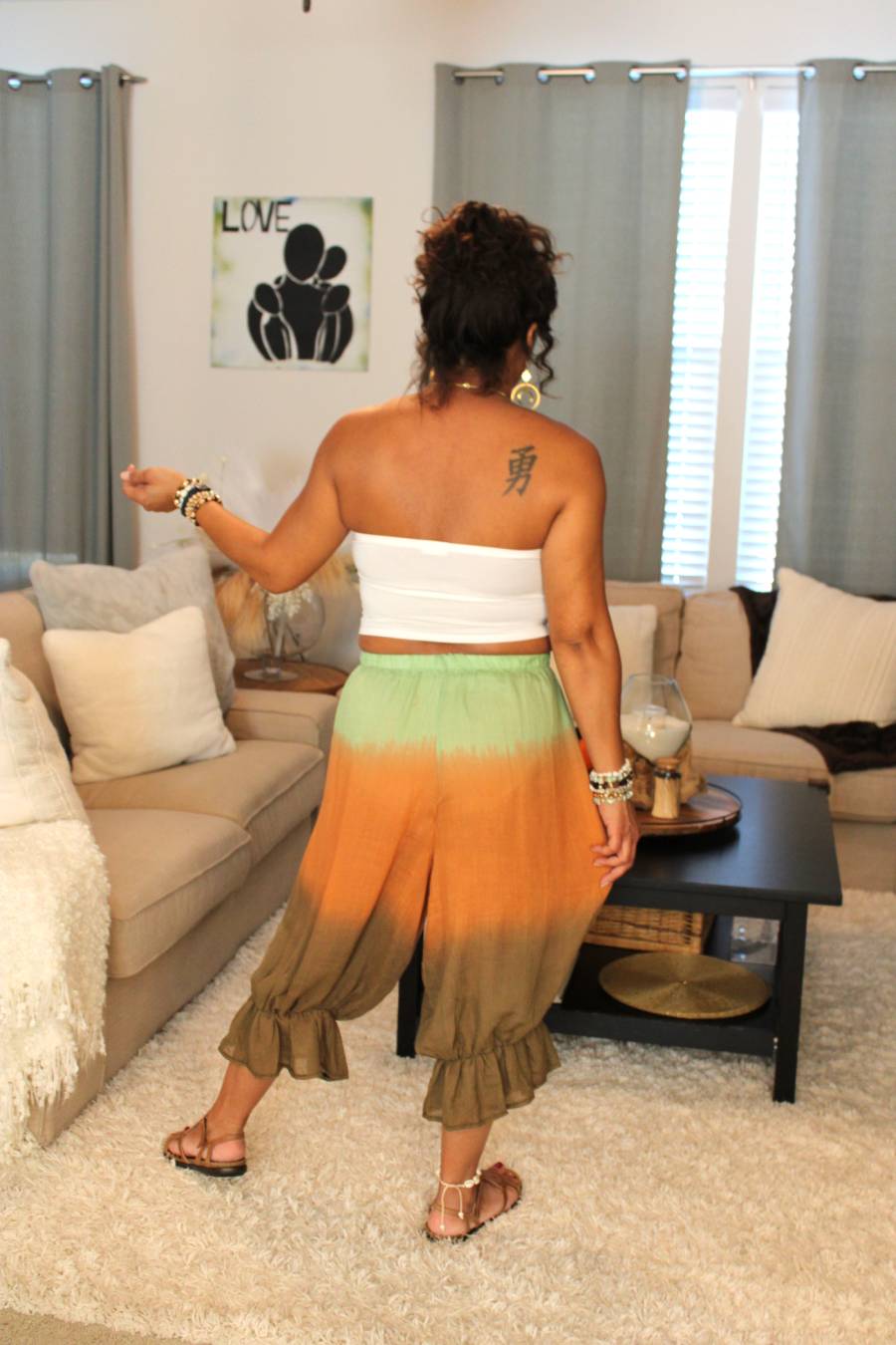 - Elastic cuff towards bottom of pants to give a traditional bloomer shape