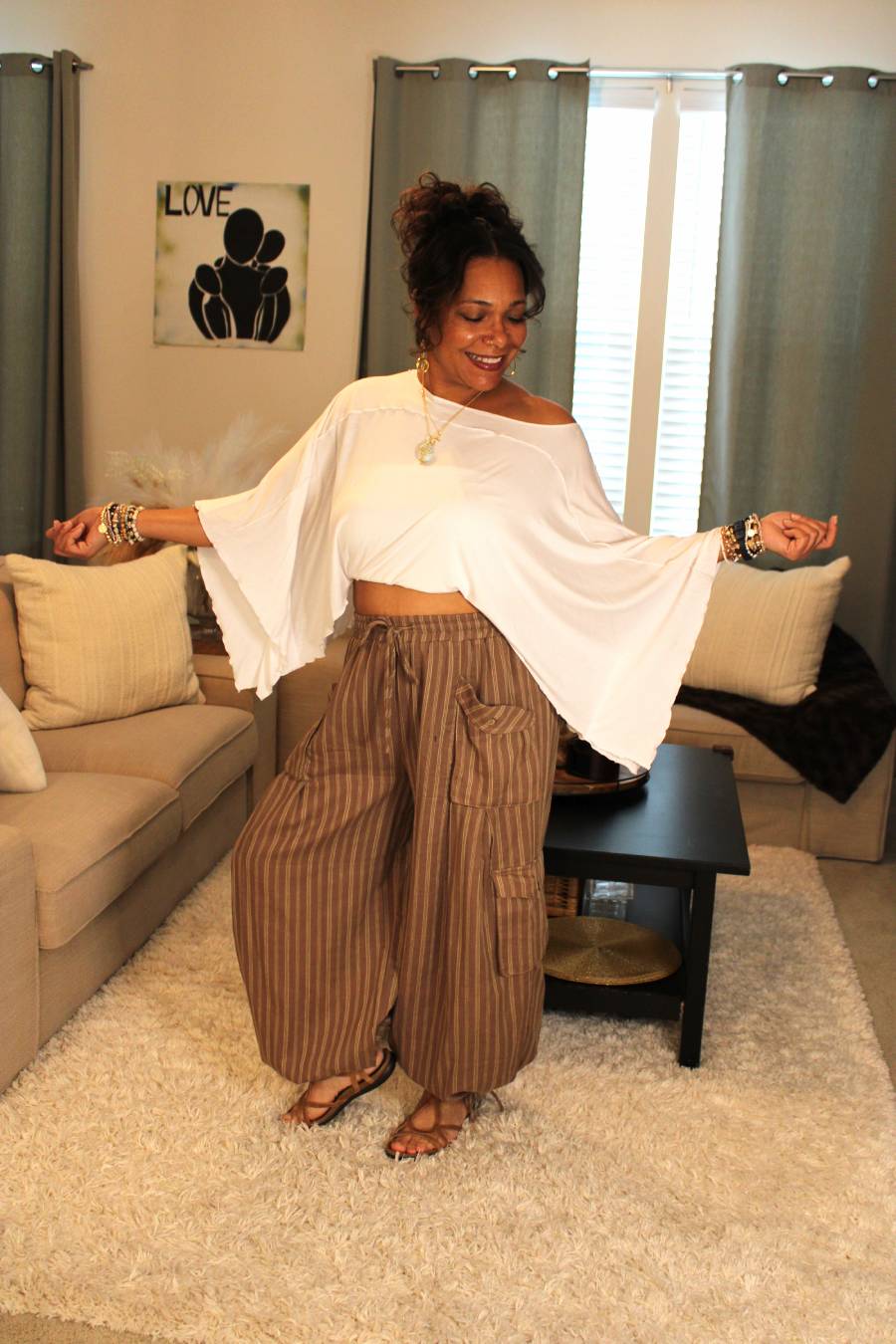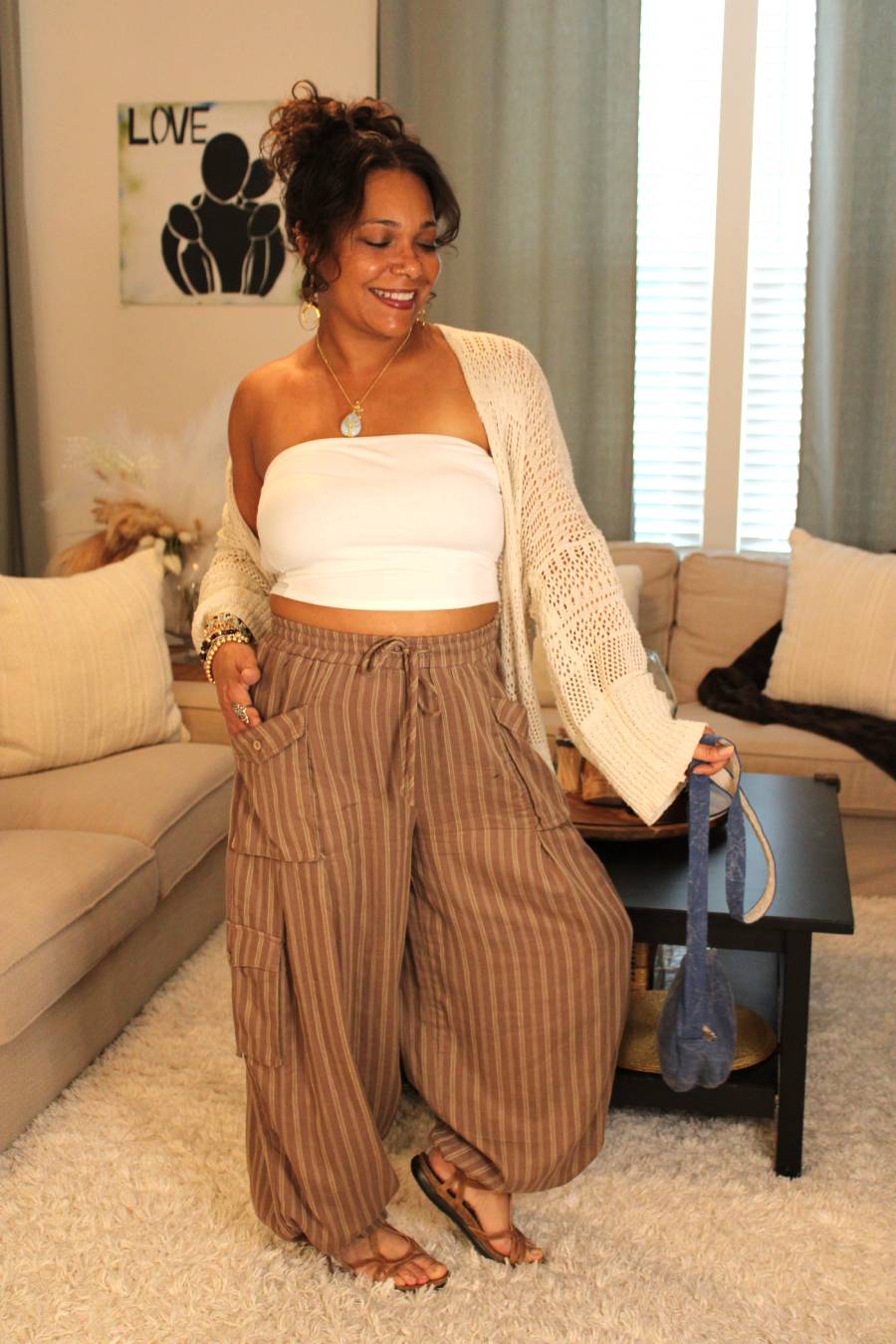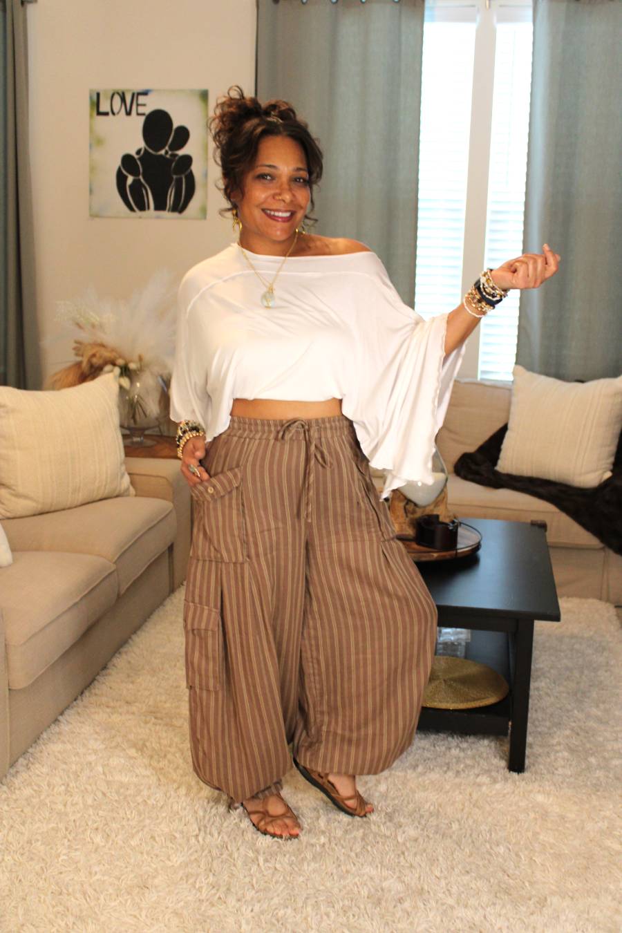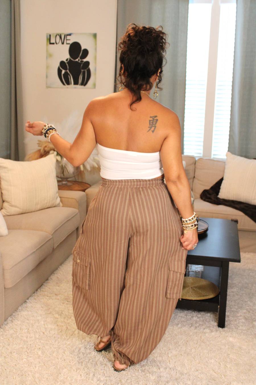 • Load image into Gallery viewer, Striped Mocha Convertible Cargo Pants