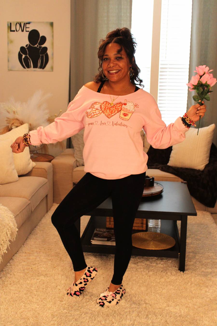 *Model is wearing a size S & has cut the crew neckline of sweatshirt for an off the shoulder look for styling.