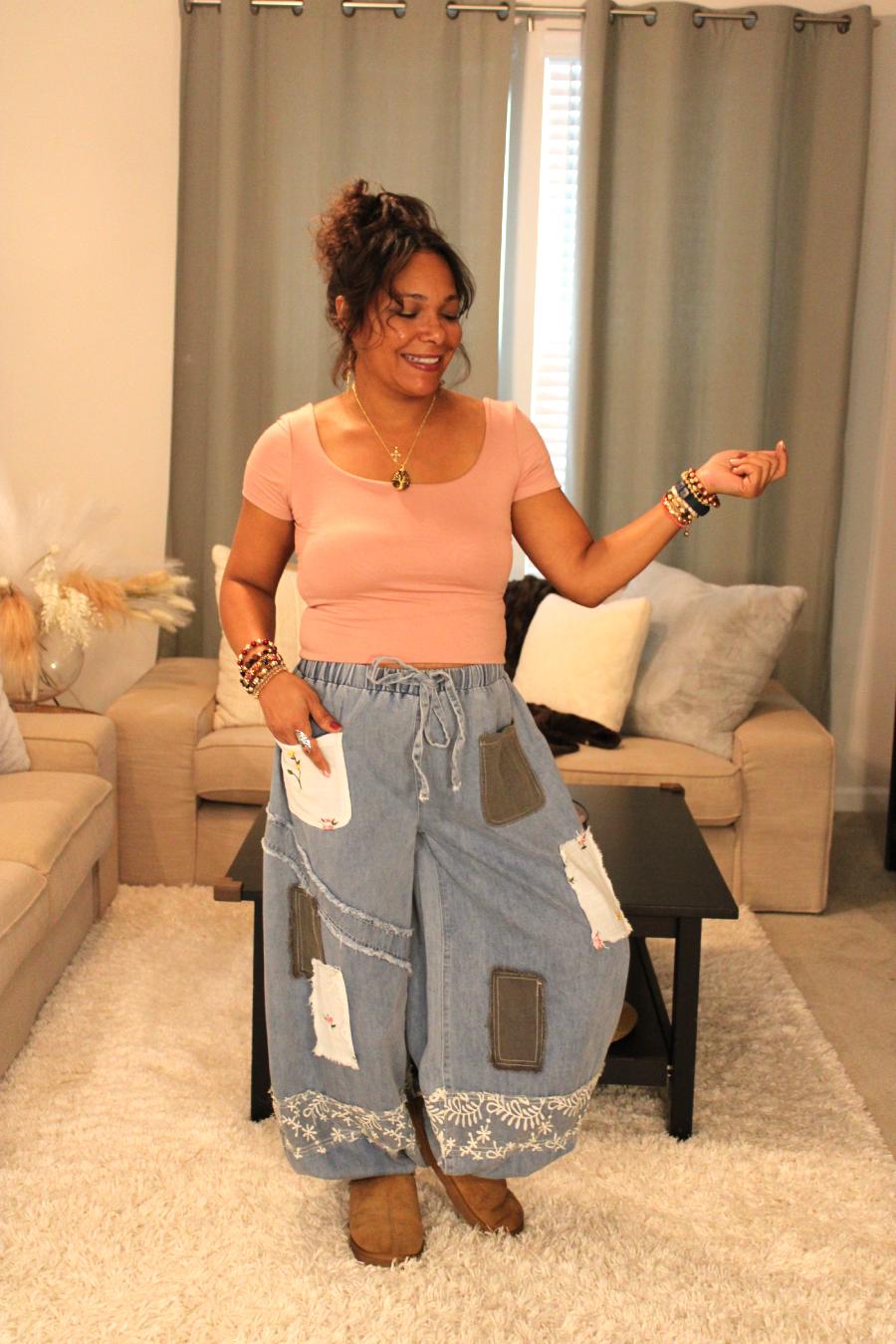 • Load image into Gallery viewer, POL Double Gauze Lace Jogger Pants