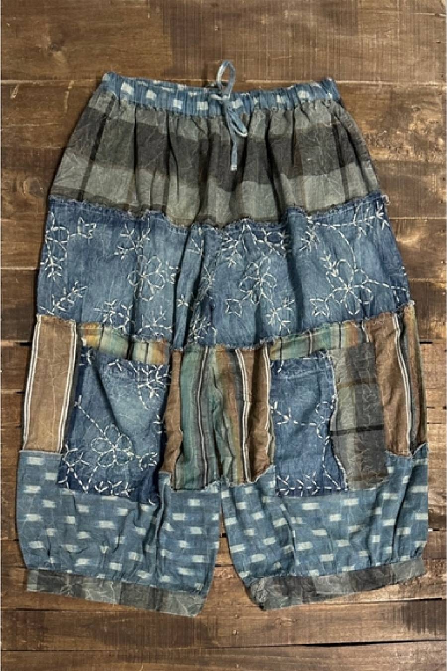 Horizontal stripe pattern on upper half of pants, embroidered floral shaped section & patches to make pants with a unique design. These Jaded Gypsy pants also feature classic blues & tones of brown vertical for a lovely color contrast take on patchwork pants.