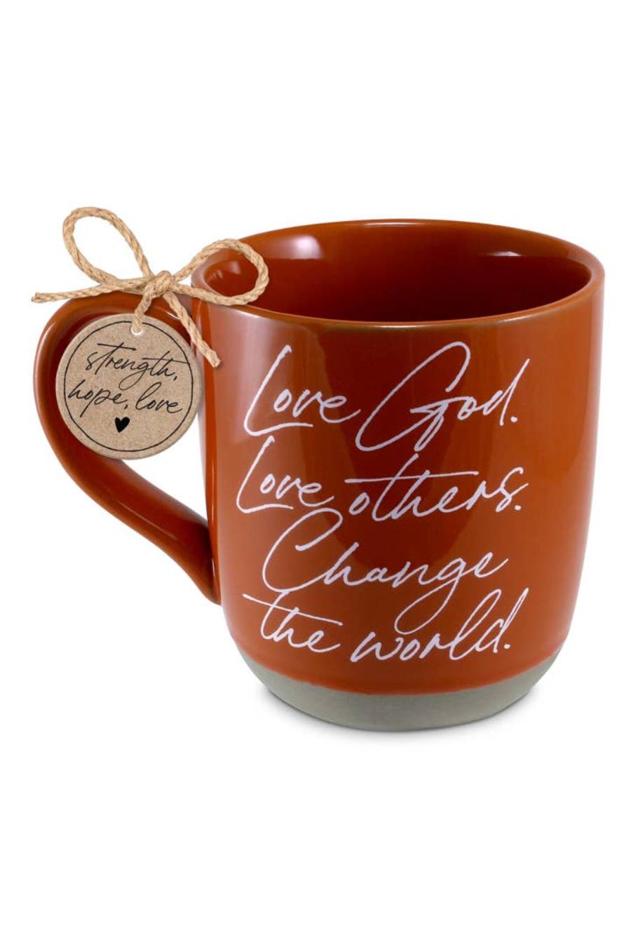 - One side reads "Love God. Love Others. Change The World".