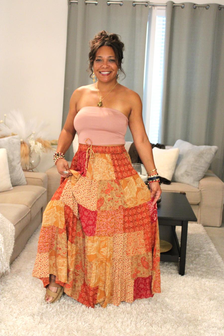 -*Due to the nature of patchwork similar prints by which print design and print placement WILL VARY AS COMPARED TO SHOWN IMAGE. Each skirt is unique unto itself for a piece that is truly one-of-a-kind that no one else in the world will have. Each skirt only shares the same style/cut/fabric patterns.