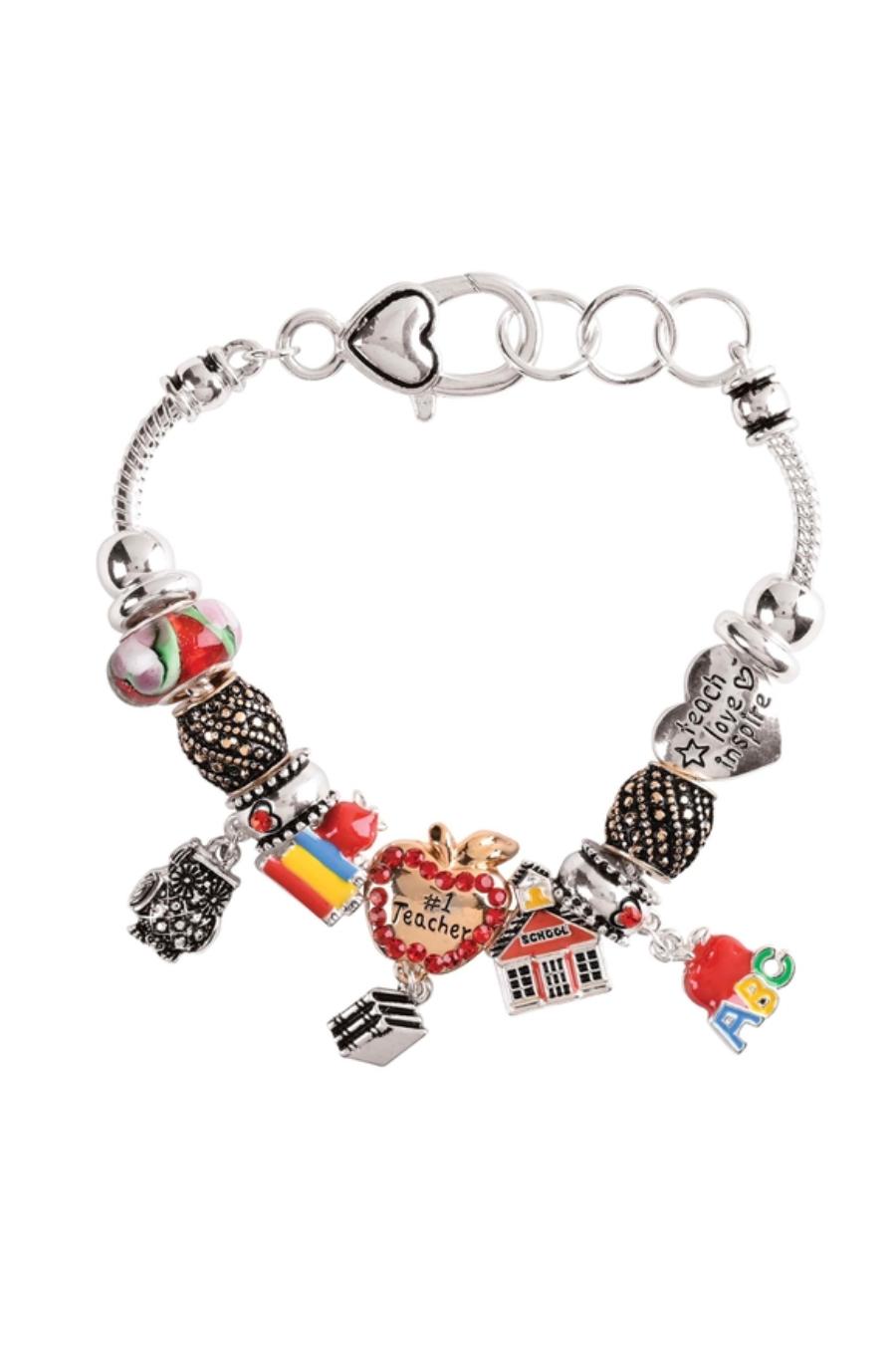 - Features unique dual-plated, gold plated, and cubic zirconia accented beads & charms including: apples, books, a school-house with red enamel, an owl, and more!
