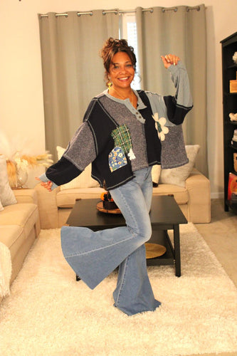 POL Indigo Feeling Patchy Oversized Pullover Top