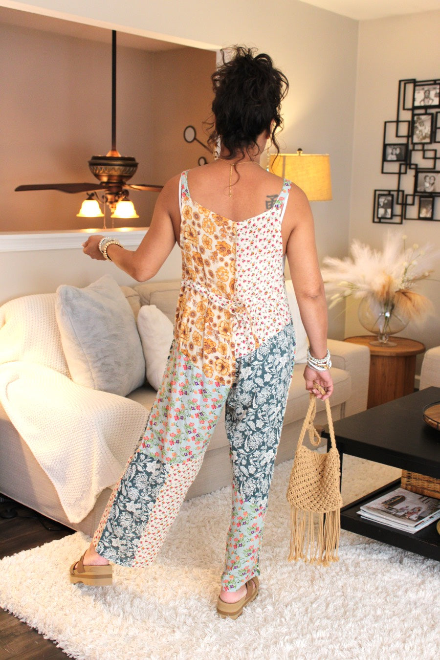 -*Due to the nature of patchwork similar prints by which print design and print placement WILL VARY AS COMPARED TO SHOWN IMAGE. Each jumpsuit is unique unto itself for a piece that is truly one-of-a-kind that no one else in the world will have. Each jumpsuit only shares the same style/cut/fabric patterns.