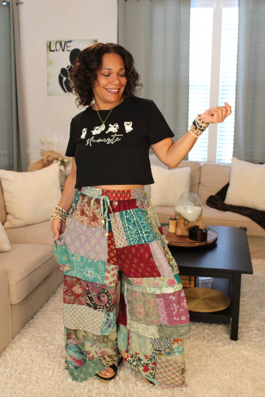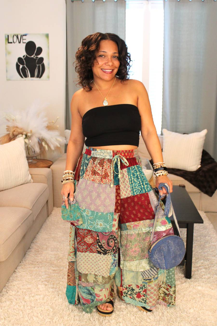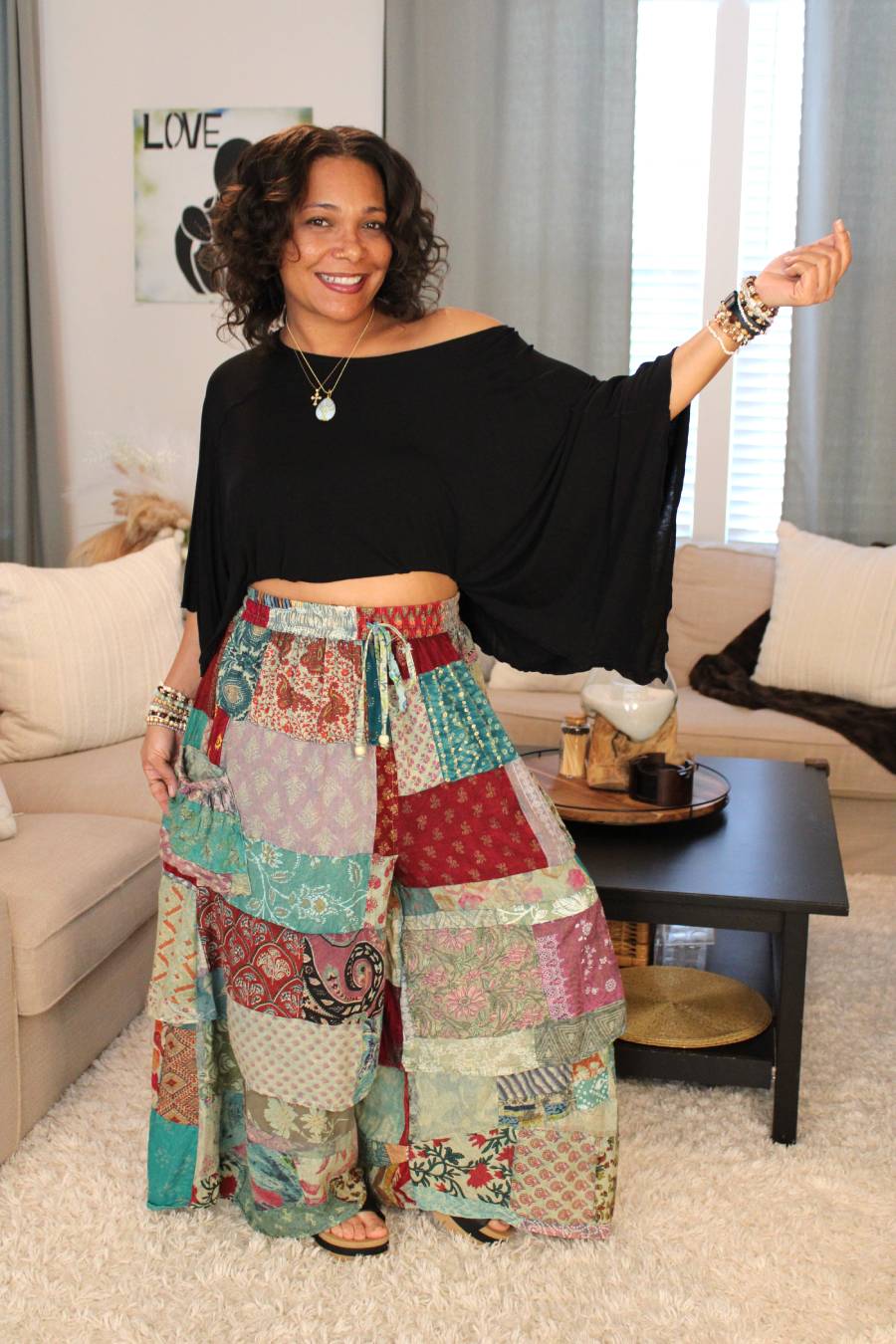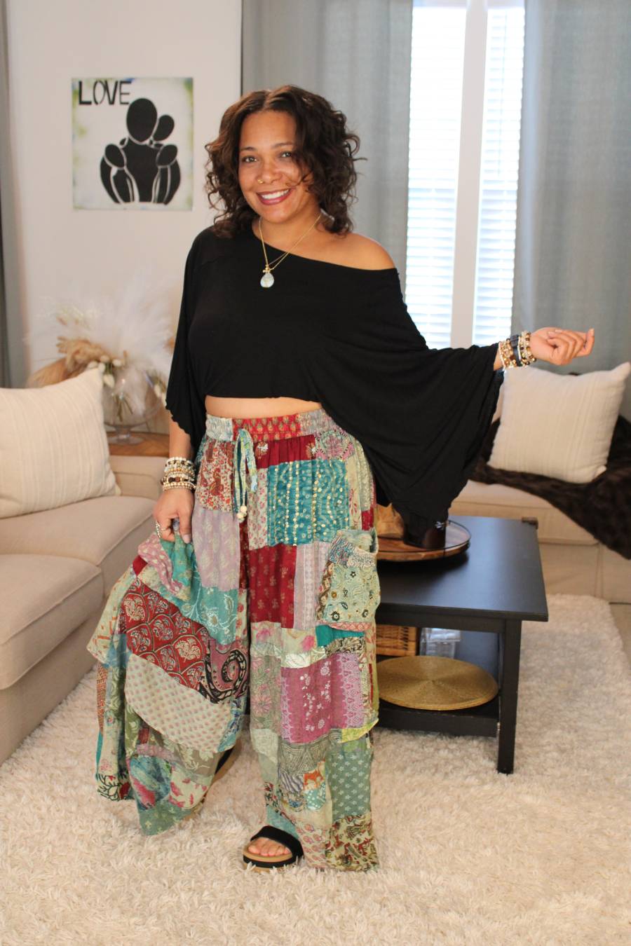 Love color? These beautiful JG sierra sunset pants are perfect for you! With all the beautiful patch details, patterns, & out seam details their appearance of artisanal vibes truly give off a happy, bohemian vibe that will turn heads! 💖